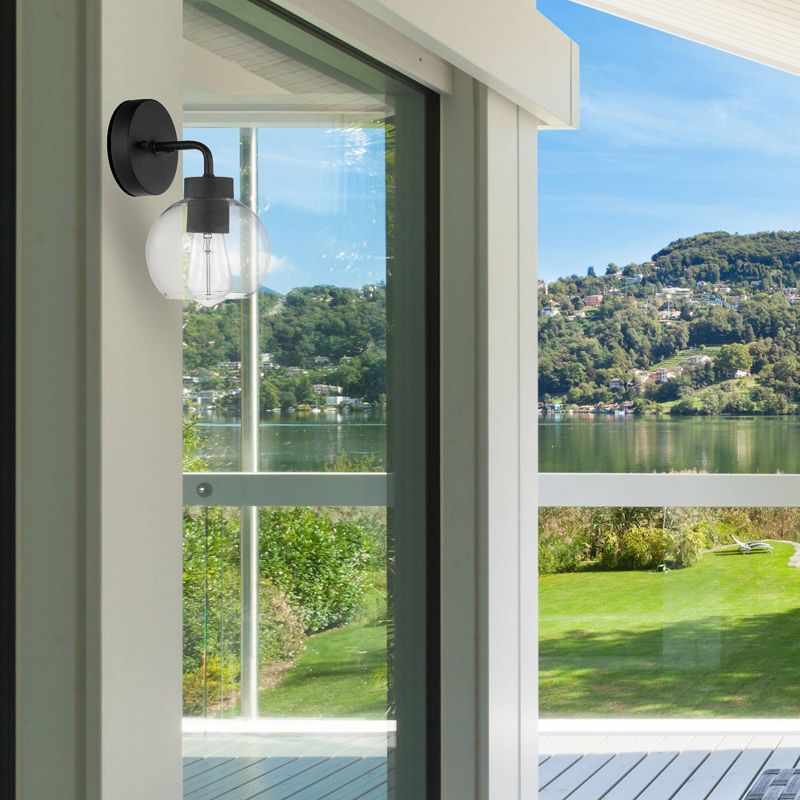 The minimalist design of the Bangor Outdoor Wall Sconce creates the perfect light to welcome you and your guests' home. Strikingly crafted, the classic round backplate is accented by a clear glass globe shade for a timeless contemporary fixture perfect for a range of sophisticated décor. The black finish brings a playful element to make this a truly versatile piece. Adding to this versatility, the 9-inch height allows you to place this sconce anywhere you like throughout your home - outside or inside. The options are endless!