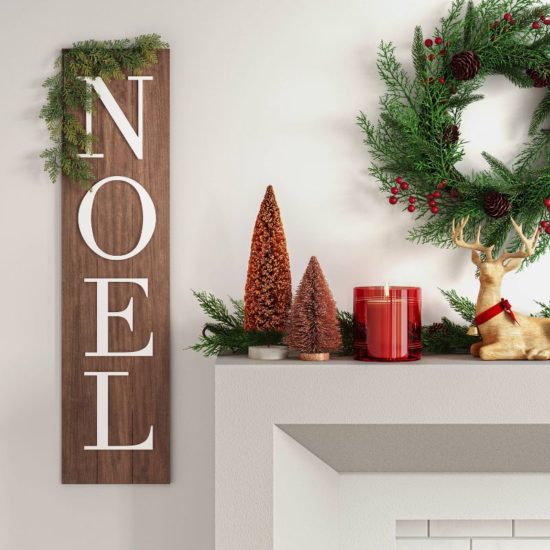 Give your lovely abode some holiday cheer with the "Noel" Wood Sign Panel from Threshold™. This decorative holiday sign pops with the word "Noel" in white set on a brown frame to add a splash of festive cheer to your seasonal decor. Adorned with artificial pine needles on the top that go perfectly with your holiday display, this decorative holiday sign is sure to become a favorite in your seasonal decor. Hang it anywhere in your home to add some extra cheer and create a cozy holiday space.