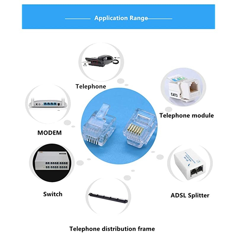 Buy 100 Pack RJ12 6P6C Plug Transparent Telephone Jack Flat Cable Modular Plug Connector Clear Line Snapin CrimpOn Plugs in United States - Cartnear.com