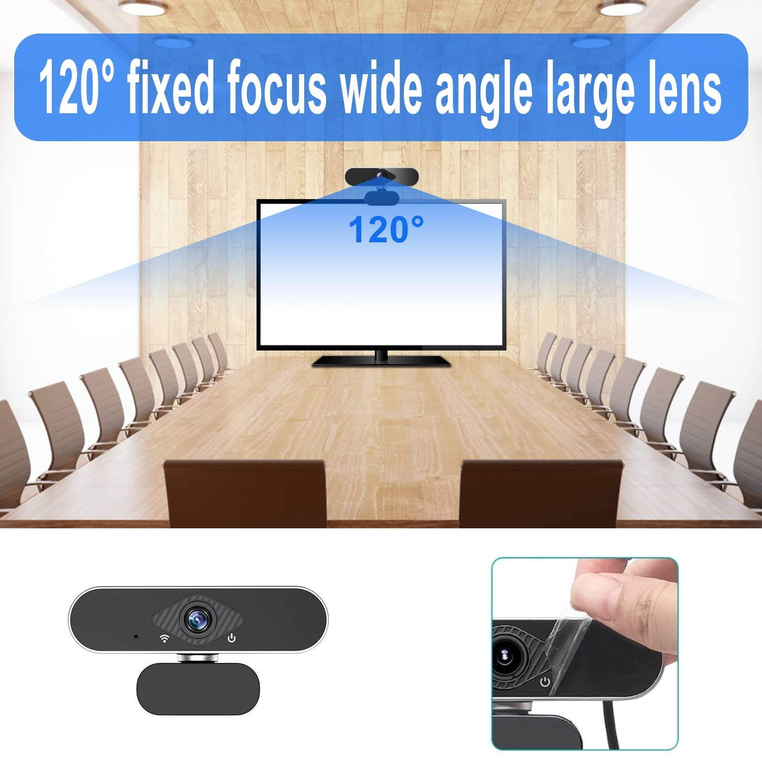 ?AUTO FOCUS & LIGHT CORRECTION? Automatic low-light correction provide true-to-life video even in dim lighting conditions. Auto focus and Facial-enhancement Technology optimize the image automatically, makes you look more beautiful in the video.120 degree wide angle enables you see everyone in the video conference.