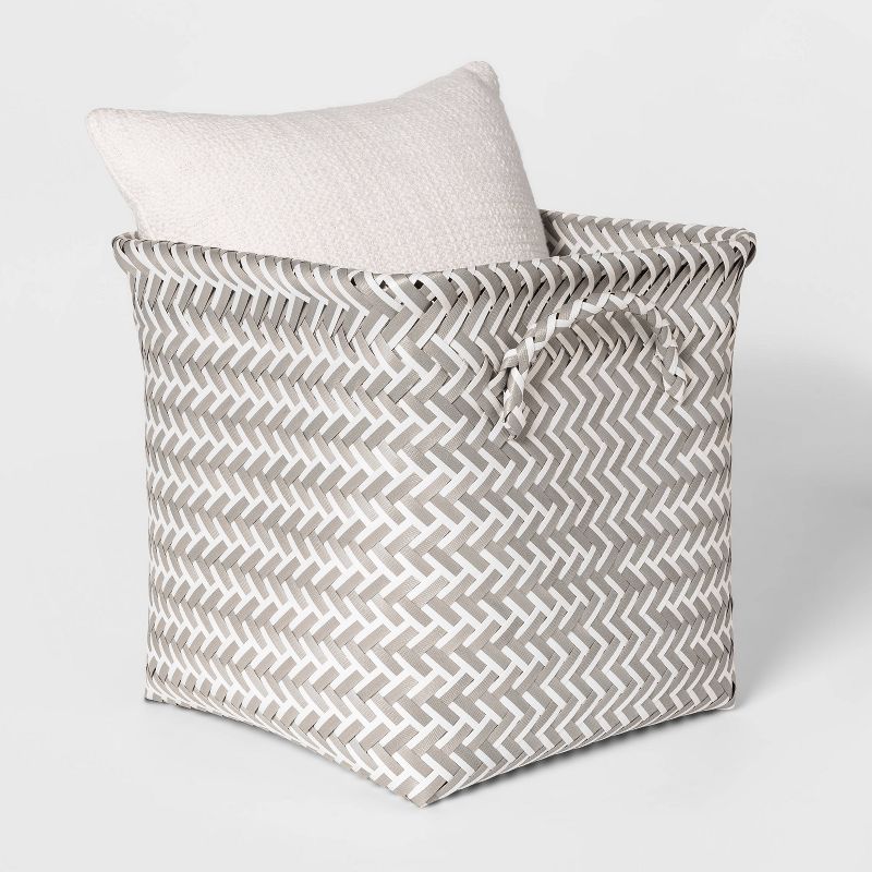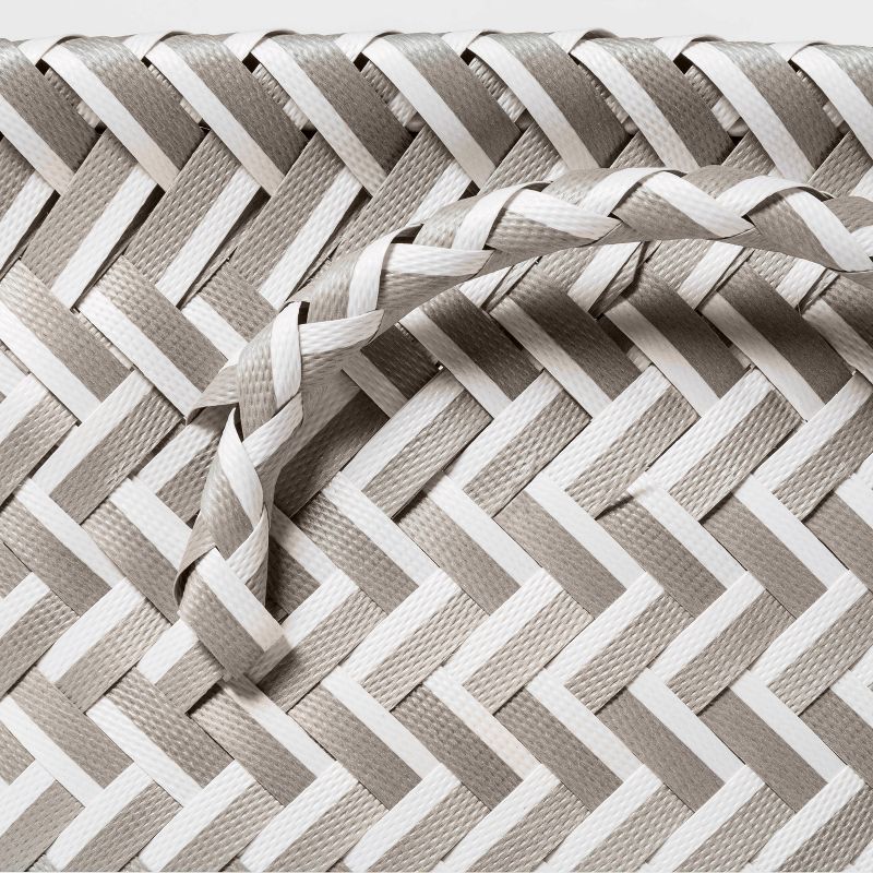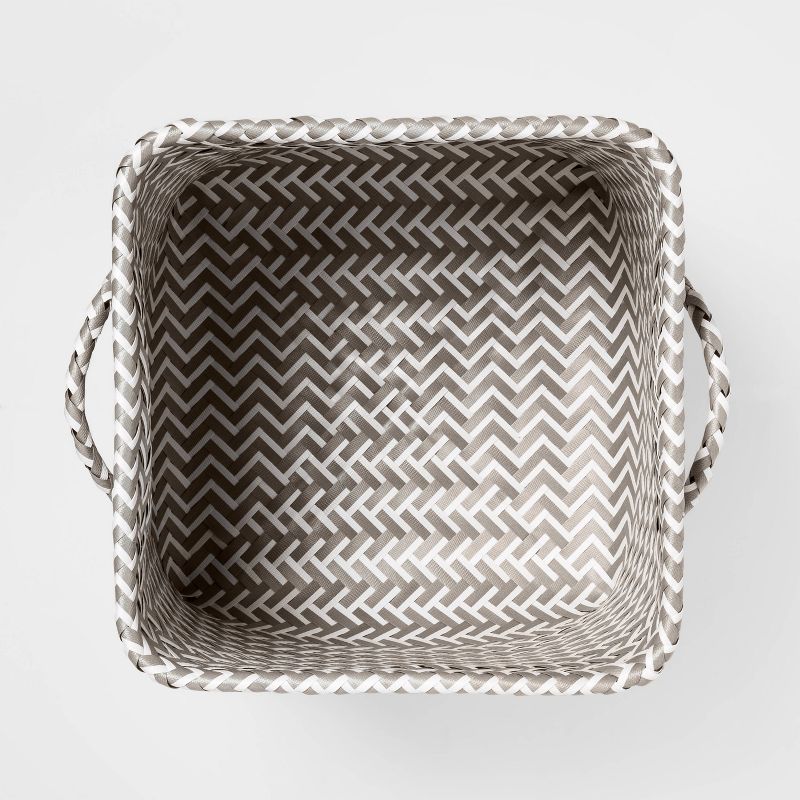 Get organized with Room Essentials Small Decorative Bin. Hand-woven of durable polypropylene in a clean, gray & white zig zag weave. This basket will bring order to chaos, contain the clutter and provide a place for everything. Use individually or with our 11" cube storage systems. Our Room Essentials Small Decorative Bin adds a sophisticated touch to your well-organized home.
