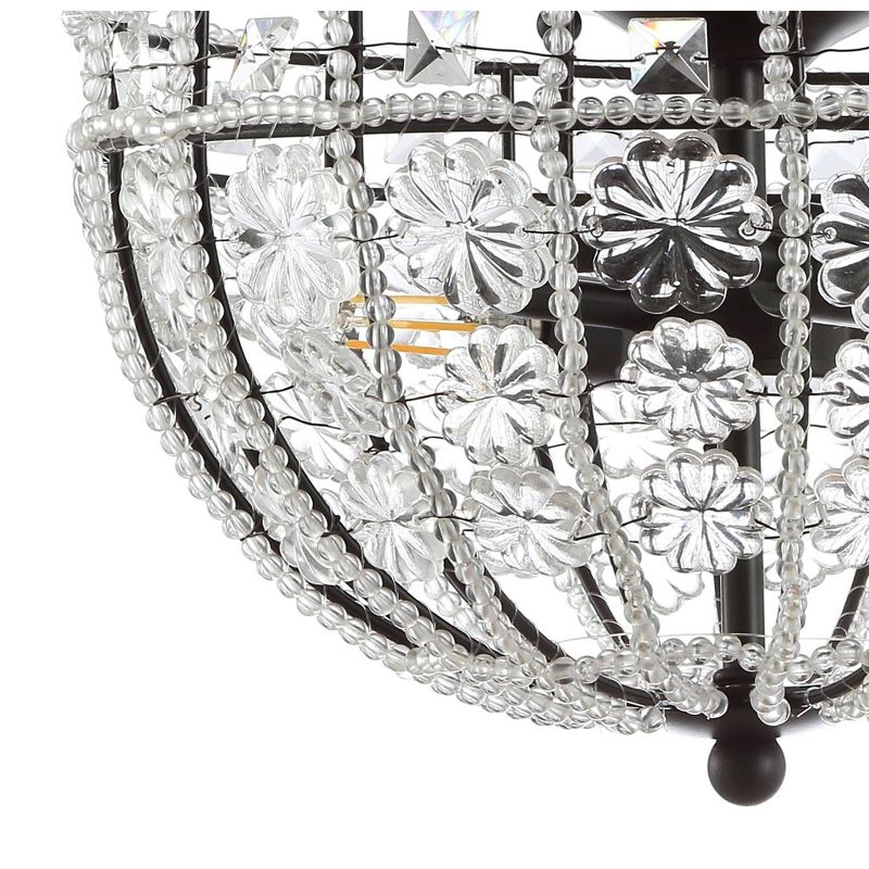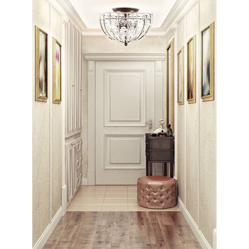 Add drama and sparkle to your ceiling with our modern, feminine semi-flush light fixture. Flower crystals are set into a crystal-covered black metal shade. This light fixture is a glamorous addition to your hallway, bedroom or bathroom. Two included LED bulbs provide plenty of light.
