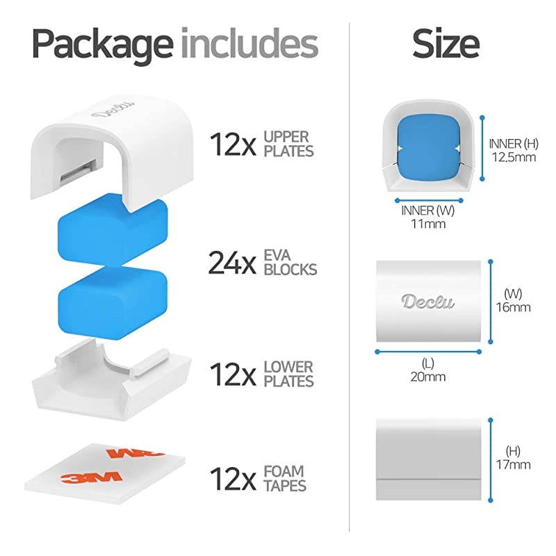 STRENGTH SELF ADHESIVE TAPE: 3M strong acrylic foam tape is used to ensure reliable adhesion on various surfaces and no sticky residue remains when the tape is detached. *****SIMPLE DESIGN WELL MATCHED ALL FOR PLACES: Simple and neat design is perfect for managing wires at home and on office walls as well as organizing charging cable on car dashboards or desks.