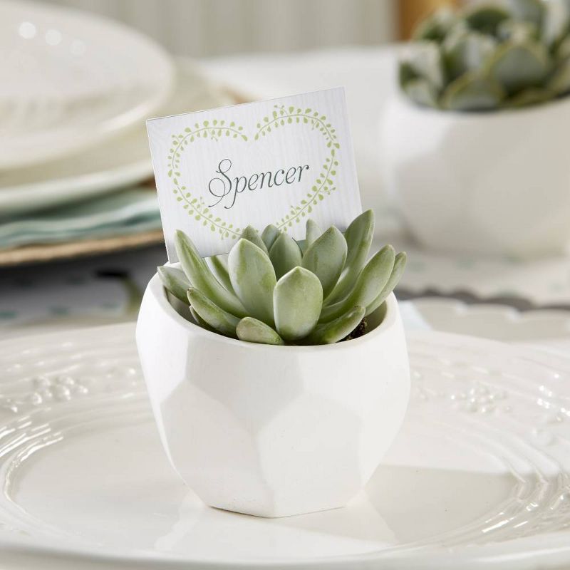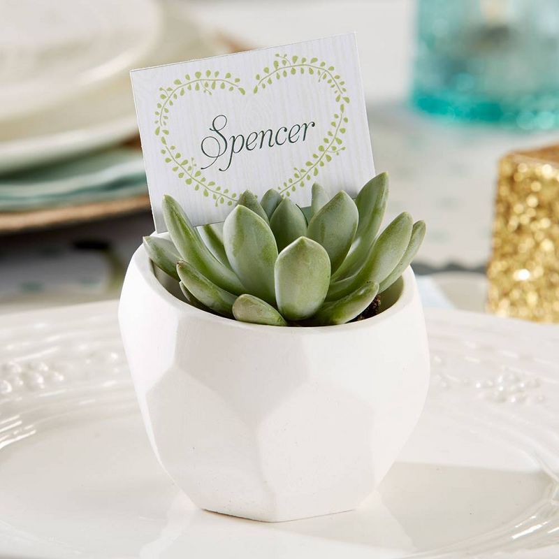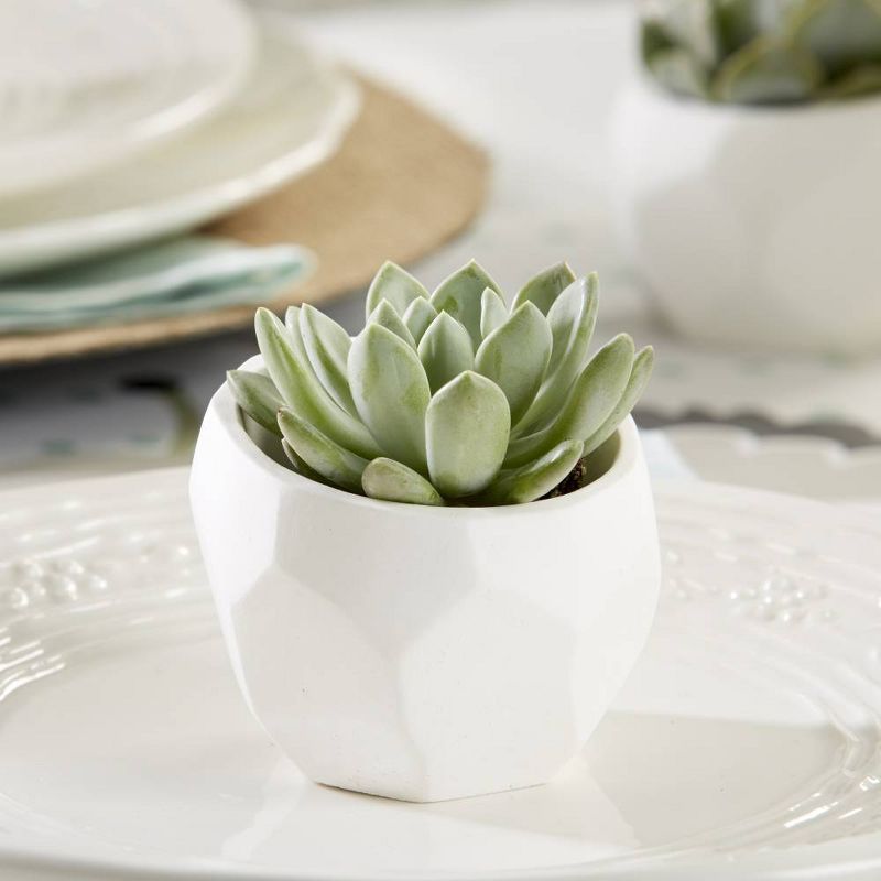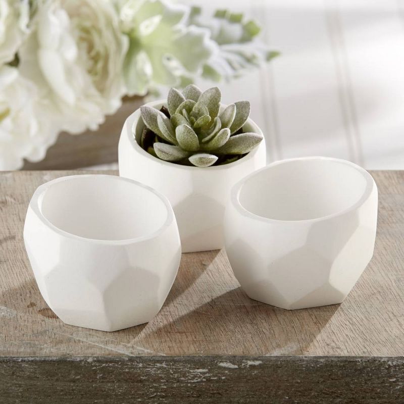 From Modern and geometric to shabby chic, mini white plaster planters by Kate Aspen are a must-have. Create an eye-catching low arrangement of succulents or other small plants. Add candles, beads, flowers, candy whatever you can dream up for favors or table Decor. Features and facts: made of white plaster with beveled bottom.