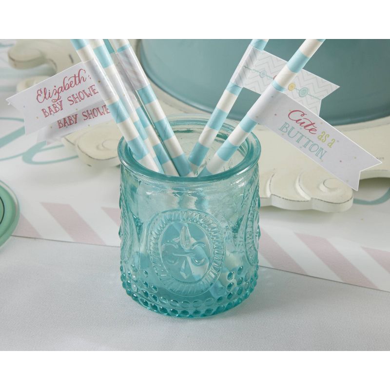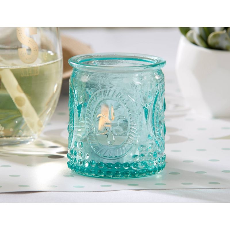 Setting the right mood for your wedding is so important. Use a few blue fleur de lis glass tealight holders on your guest tables to create a sweet and romantic mood. After the wedding, your guests can take these darling wedding favors home to celebrate your big day while creating soft and special memories of their own.