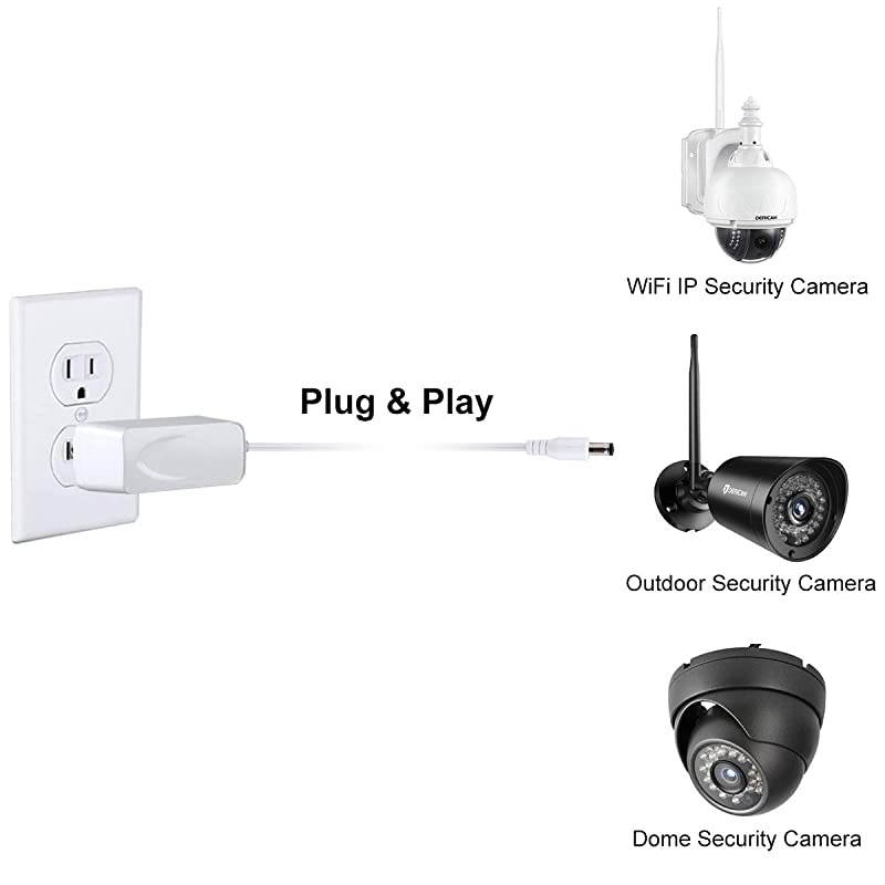 Buy 12V 1A DC Power Supply Adapter for IP/CCTV Security Camera, 5ft/1.5 Meter AC to DC Power Cord, Wall Charger, Output DC 12V 1000mA, Input AC 100V-240V/50 or 60Hz/0.4A Max, US Plug, White in United States - Cartnear.com