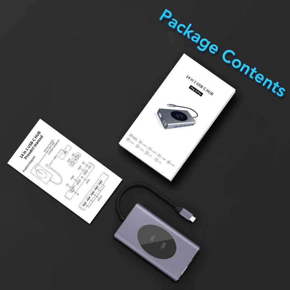 14-in-1 - USB 3.0 x 5, 3.5mm Jack x 1, Type C PD x 1, HDMI x 2,SD Slot x 1, TF Slot x 1,VGA x 1, LAN RJ45 x 1, Wireless Charge x 1 ?