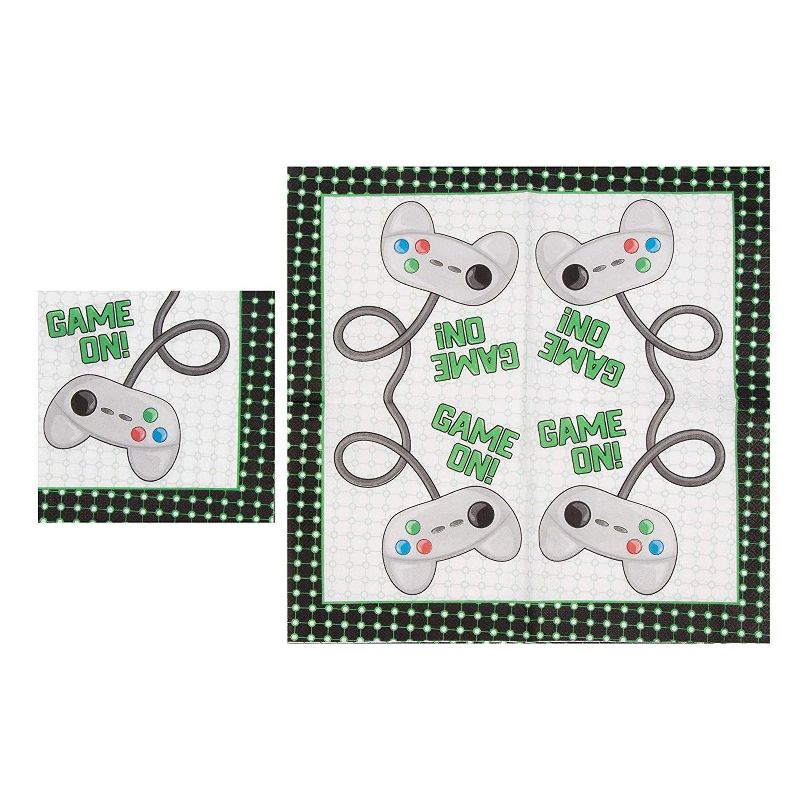 • Birthday Supplies: The paper plates, cups, and napkins feature a classic white video game controller printed with bright green letters; create a perfectly coordinated theme for children's birthdays, family events, and classroom parties