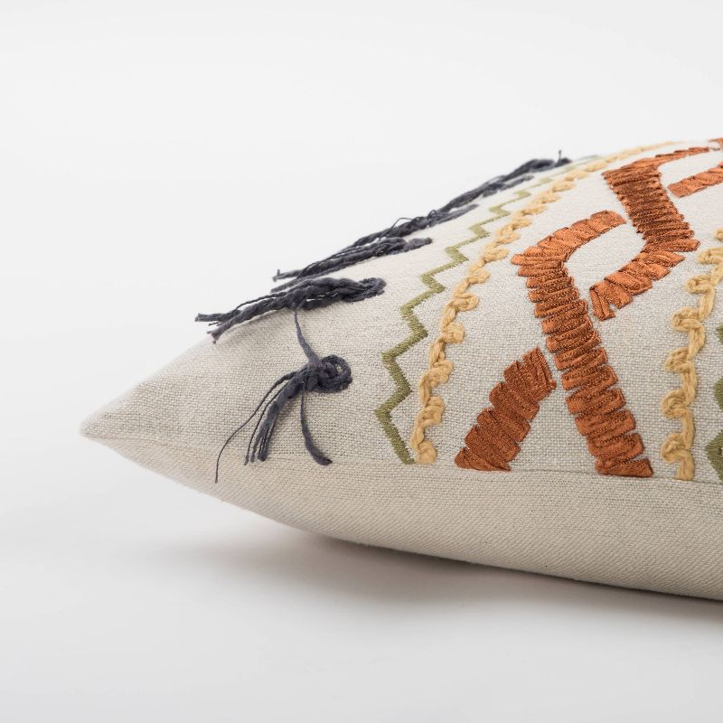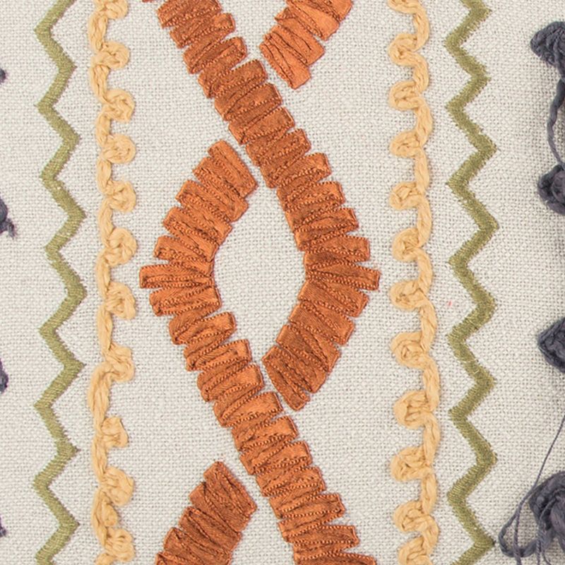 This pillow uses embroidery techniques to achieve a study of hand and machine embroidery applications. Ribbon embroidery, hand and machine stitchery come together in a variety of patterns and colors to give this crafted pillow a total artisinal appeal. Executed on a cotton base, this technique study of stitchery would be a fabulous artistic fit in many modern or crafted decors. Knife edged, this pillow features a solid coordinating cotton back with a hidden zipper closure.