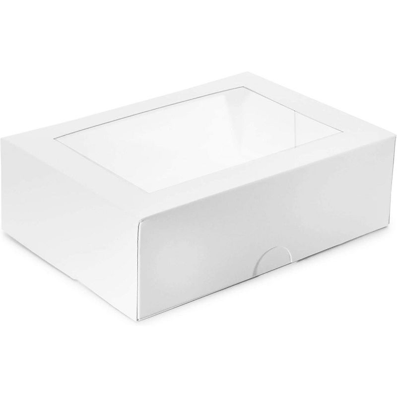 Cake Box with Display Window, Pastry Bakery Box (8 x 2.5 x 5.75 In, 15 Pack)