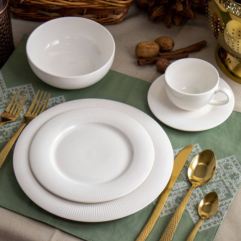 Make a lasting impression with this beautiful Elama Pallene 20 Piece Porcelain Dinnerware Set. Exquisite tableware with elegant textured design will surely make a statement at your next dinner party. Dish set is perfect for small intimate meals and larger gatherings, versatile for any occasion. Each piece is microwave and dishwasher safe for quick and easy reheating and care. Durable construction will last a lifetime