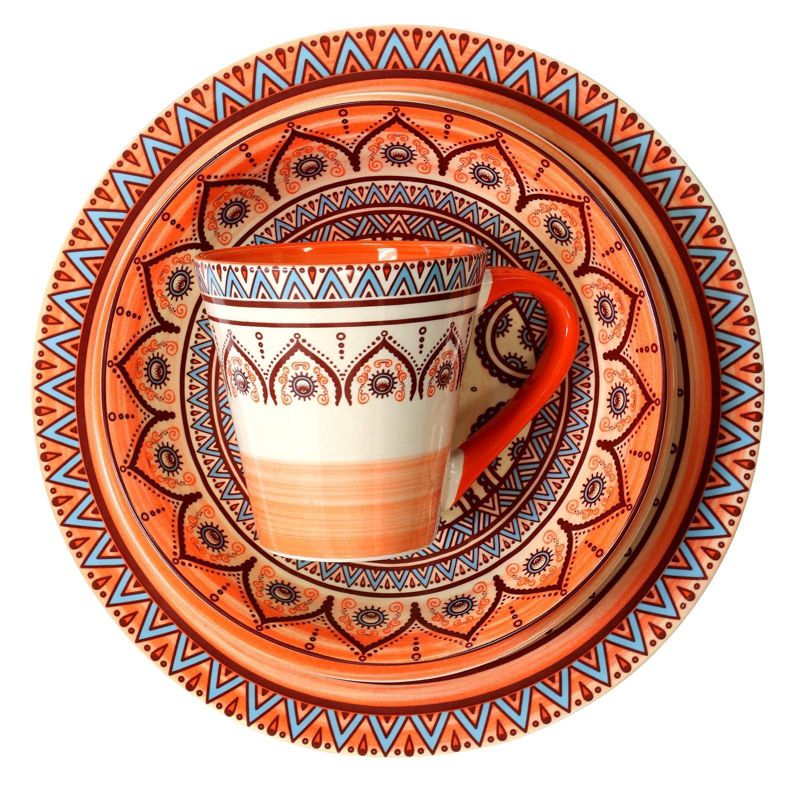 The Elama Citrus Kaleidoscope 16 Piece Dinnerware Set is a lovely addition of color for your table. Whether you choose to host a large party or enjoy an intimate meal in your home, these plates will brighten up your day with colorful and vibrant tones and intricate bohemian style. Ideal for every day casual settings as well as formal gatherings. Crafted from high quality stoneware for a durable and long lasting design.