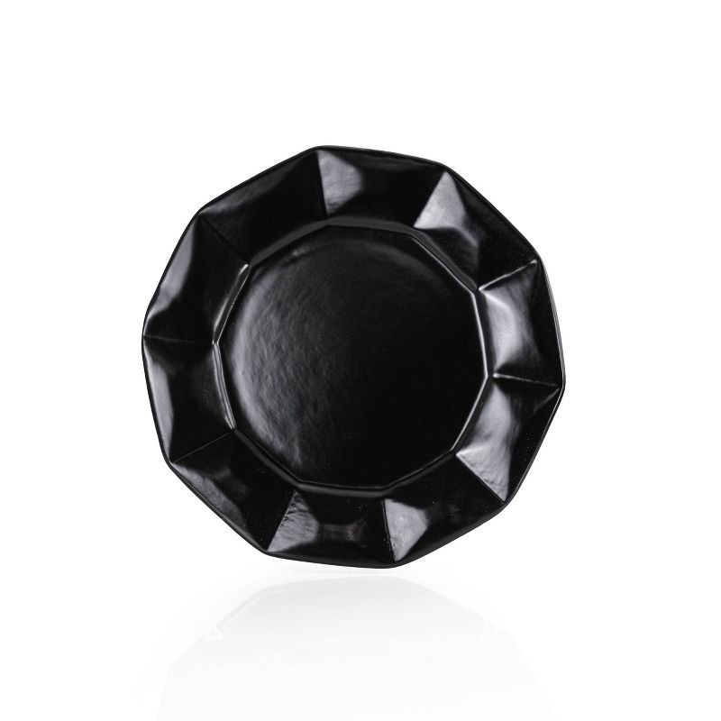 This Elama Diamond Cut 16-Piece Glazed Dinnerware Set in Black is a unique collection featuring two highly sought-after looks. The distinctive geometric border set features a reactive glaze that combines beauty and class that's ideal for any tablescape. Ideal for every day casual settings as well as formal gatherings. Crafted from high quality stoneware for a durable and long lasting design.