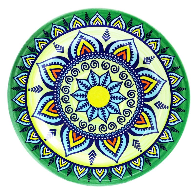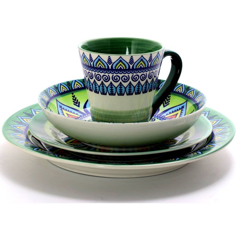 The Elama Green Kaleidoscope 16 Piece Dinnerware Set is a lovely addition of color for your table. Whether you choose to host a large party or enjoy an intimate meal in your home, these plates will brighten up your day with colorful and vibrant tones and intricate bohemian style. Ideal for every day casual settings as well as formal gatherings. Crafted from high quality stoneware for a durable and long lasting design.