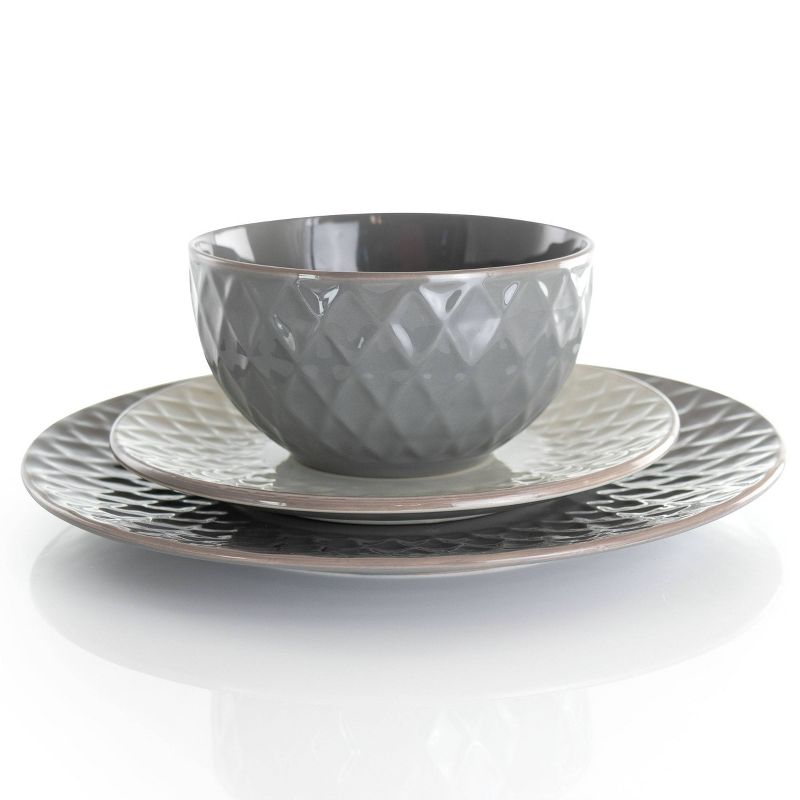 Elama's Tahitian Diamond 16 Piece Dinnerware Set in Slate and Stone with Setting for 4 is an ideal gift for yourself and your loved ones. Elegance and calm personify this dish set in Late and Stone Hughes. Featuring delicate shades of blue gray, this beautiful plate set will set a peaceful tone to your dining table for more gratifying mealtimes. Made of durable Stoneware, this graceful table setting has been crafted for long-lasting satisfaction and enjoyment. Microwave safe for quick heating and dishwasher safe for easy cleaning.