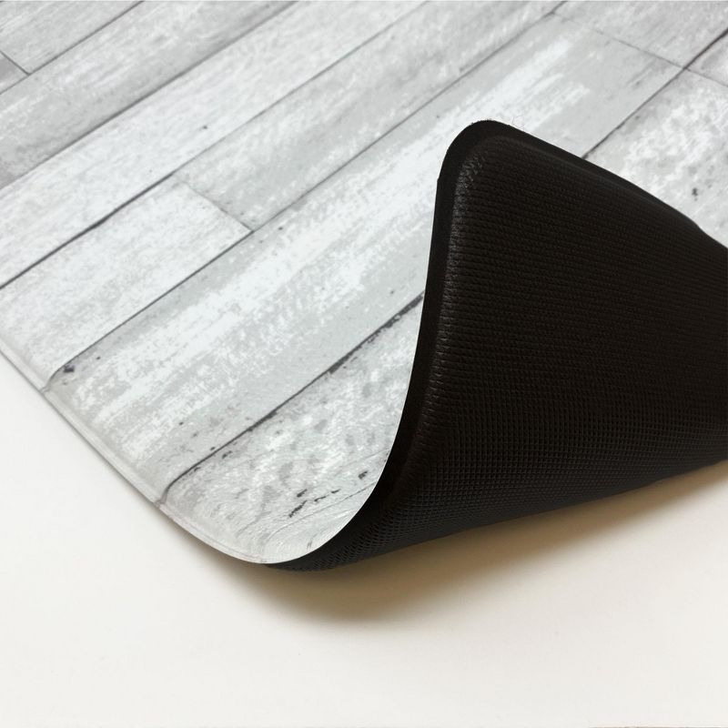 • Features a stylish rustic faux wood grey pattern on cushioned memory foam kitchen mat
