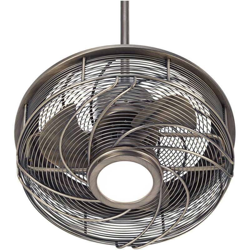 From Casa Vieja comes the Vestigeâ„¢ ceiling fan with a subtly decorative cage design. This smart fan design comes in an antique bronze finish, and features an integrated LED downlight that offers ambient, diffused lighting through a frosted white glass diffuser. UL listed for damp locations.