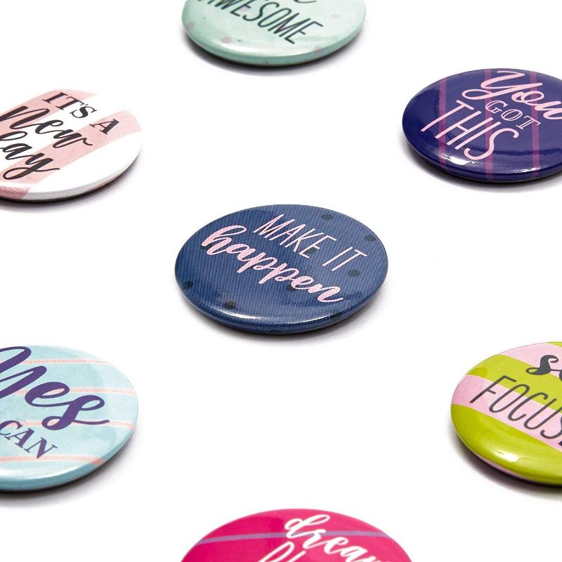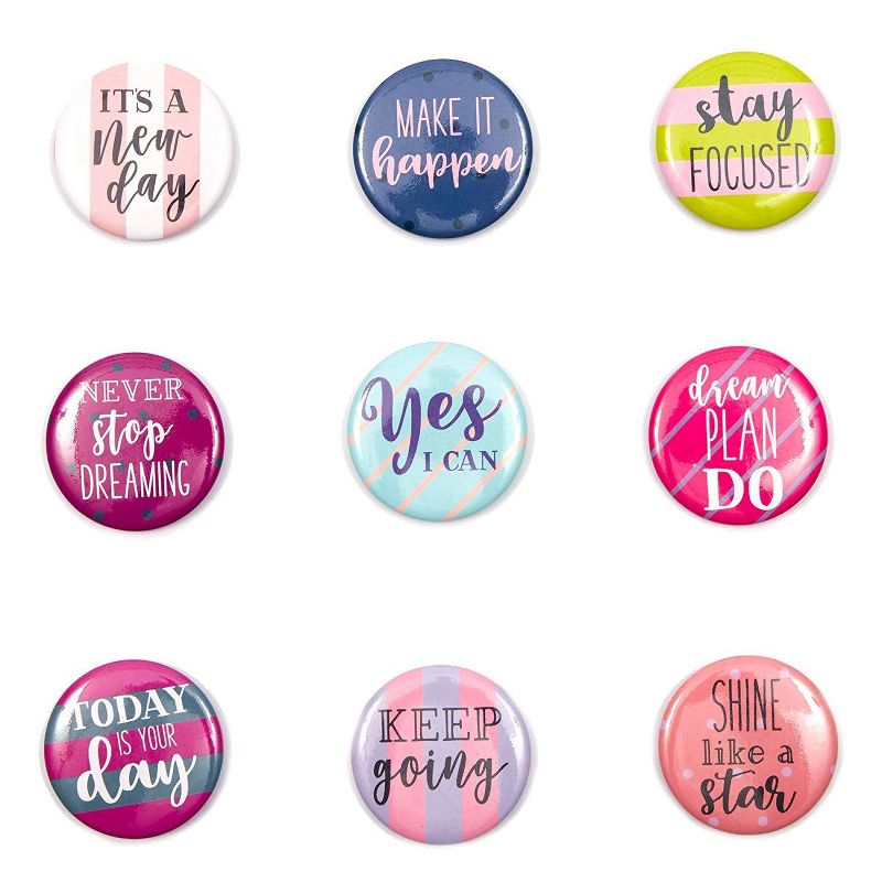 Celebrate each day and uplift your mood when you deck up the refrigerator, school locker, office whiteboard or any other metal surface with these magnets with quotes. The round motivational magnets can be used to post photos, posters and papers, or to leave cute messages and positive notes for a loved one. The tin magnets have strong magnetic backing to prevent them from falling off.