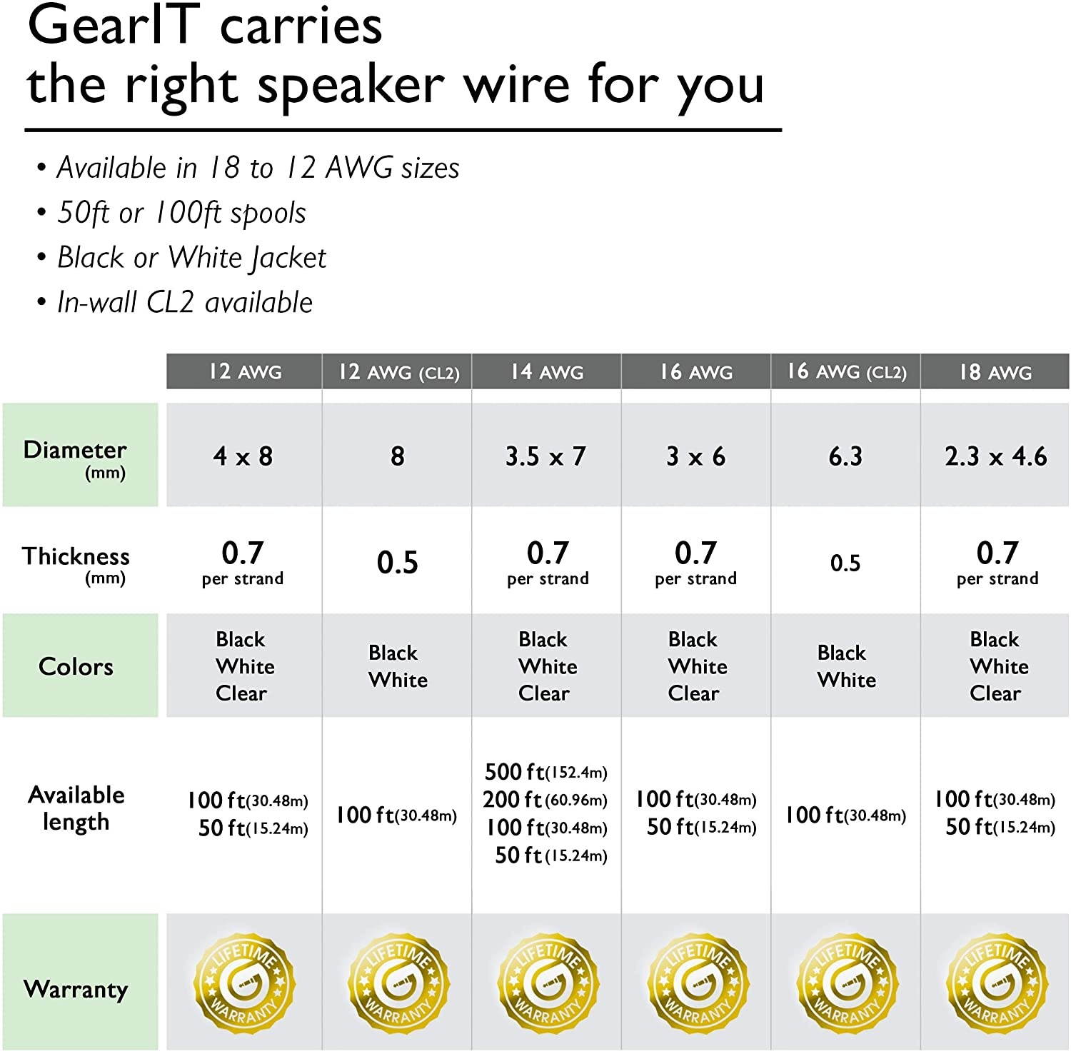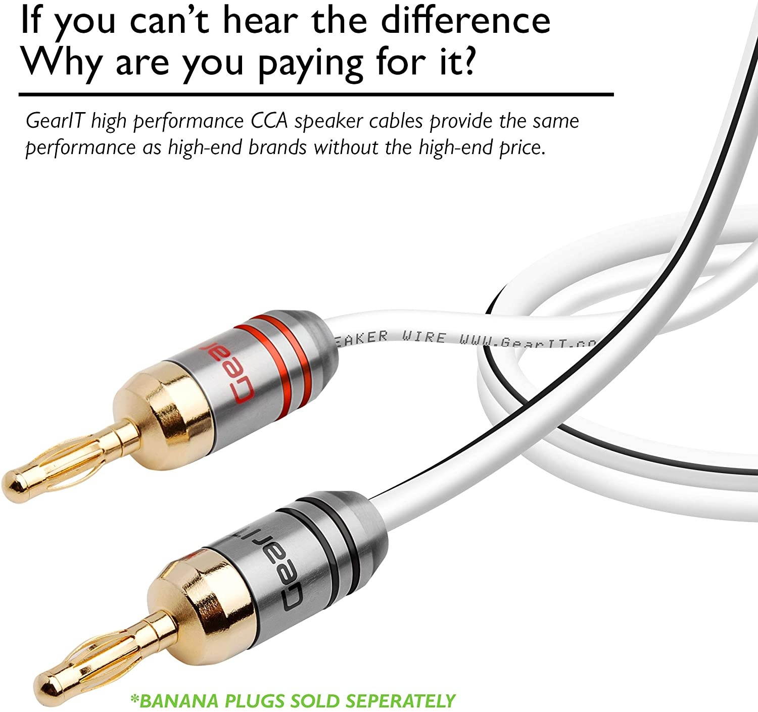 PREMINUM SPEAKER WIRE u2013 Use this GearIT Pro Series Speaker Wire Cable thatu2019s build quality stranded conductors to build this professional grade speaker wire audio cableCUSTOM INSTALLATIONS u2013 You can use this speaker wire to pair with banana plugs, spade tips, or bent pin connectors to connect your speakers to your A/V receiver or amplifier with this GearIT Pro Series speaker wire. ADVANTAGE OF CCA (COPPER CLAD ALUMINUM) u2013 Here are the facts about CCA vs Oxygen Free Copper. CCA wire offers the same signal frequency and reliability in terms of corrosion resistance to copper wire. The advantage of the CCA speaker wire is lighter and more flexible than copper wire.