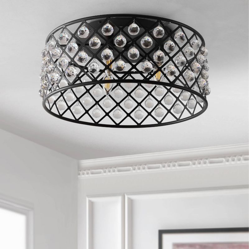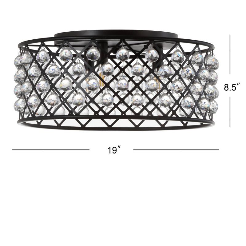 Modern simplicity meets organic beauty in the breathtakingly unique crystal and iron flush mount Hand-polished, multifaceted clear crystal spheres shimmer like dewdrops in a circular forged-iron grid with an oil-rubbed bronze finish. At 19" wide, it creates presence in any size room while blending well with most styles of home decor.