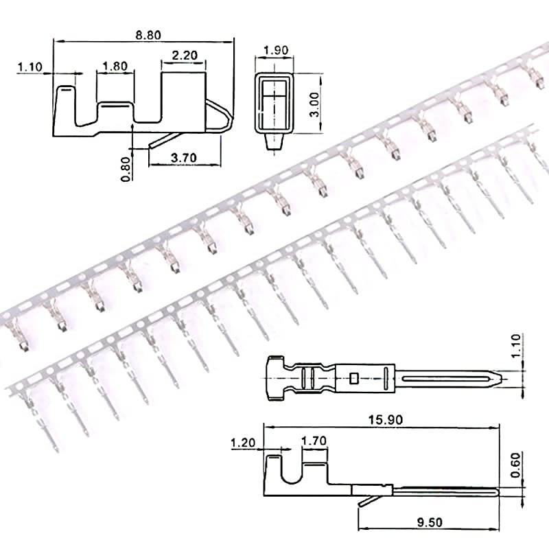 Package Details: 2 Pin Male Plug Housing x 20Pcs 3 Pin Male Plug Housing x 20Pcs 4 Pin Male Plug Housing x 20Pcs 5 Pin Male Plug Housing x 15Pcs 6 Pin Male Plug Housing x 20Pcs 7 Pin Male Plug Housing x 20Pcs 8 Pin Male Plug Housing x 20Pcs 9 Pin Male Plug Housing x 15Pcs 2 Pin Female Plug Housing x 20Pcs 3 Pin Female Plug Housing x 20Pcs 4 Pin Female Plug Housing x 20Pcs 5 Pin Female Plug Housing x 15Pcs 6 Pin Female Plug Housing x 20Pcs 7 Pin Female Plug Housing x 20Pcs 8 Pin Female Plug Housing x 20Pcs 9 Pin Female Plug Housing x 15Pcs Male Crimp Terminal x 820 pins Female Crimp Terminal x 820 pins