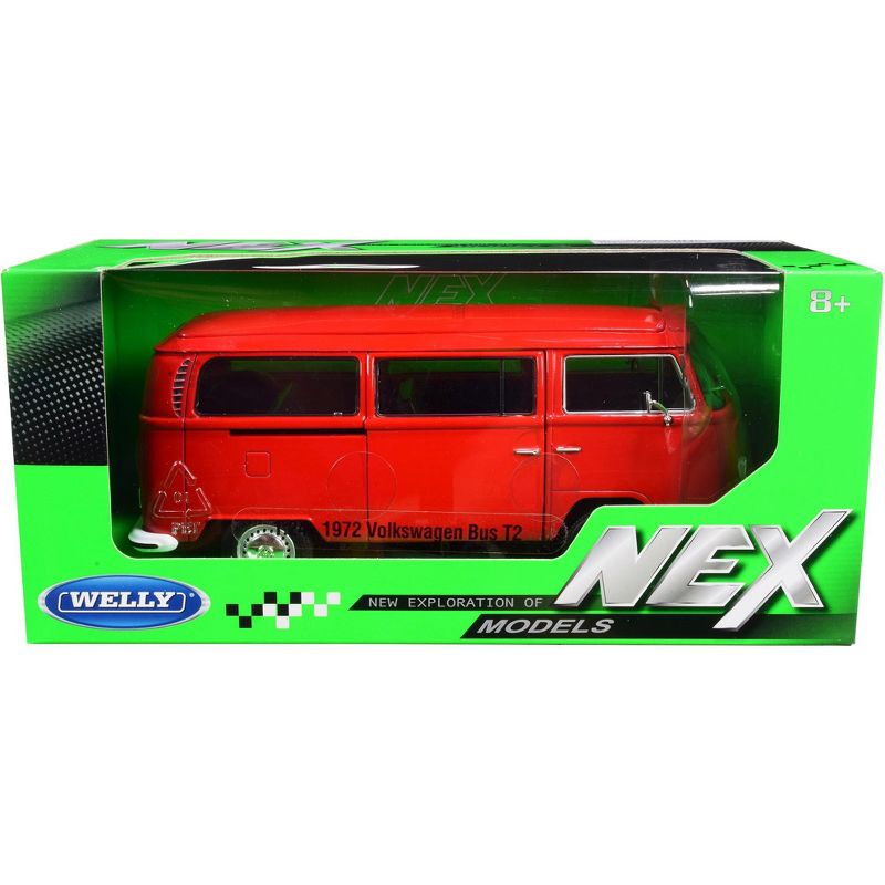 Brand new 1/24 scale diecast model of 1972 Volkswagen T2 Bus Van Red die cast model by Welly.