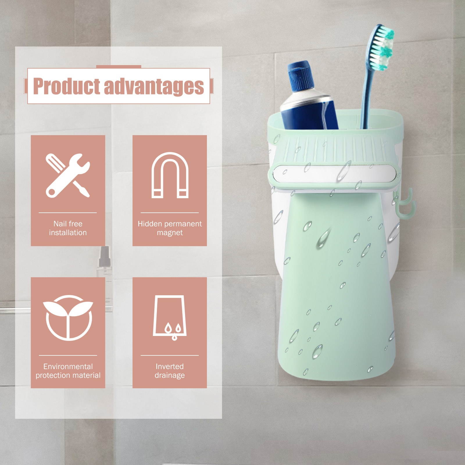 - The magnetic design allows you to store your tooth washing cup with ease.