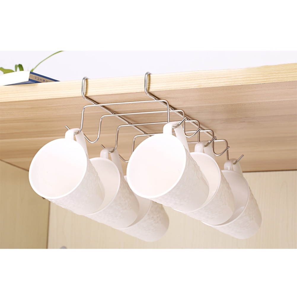 This is a stainless steel cup holder rack. With 10 hooks for storing mugs or kitchenware, it will save much space and make your kitchen look neat and clean. Creative design, saves your cabinet space. for displaying your glass cup, designed for wine lovers.