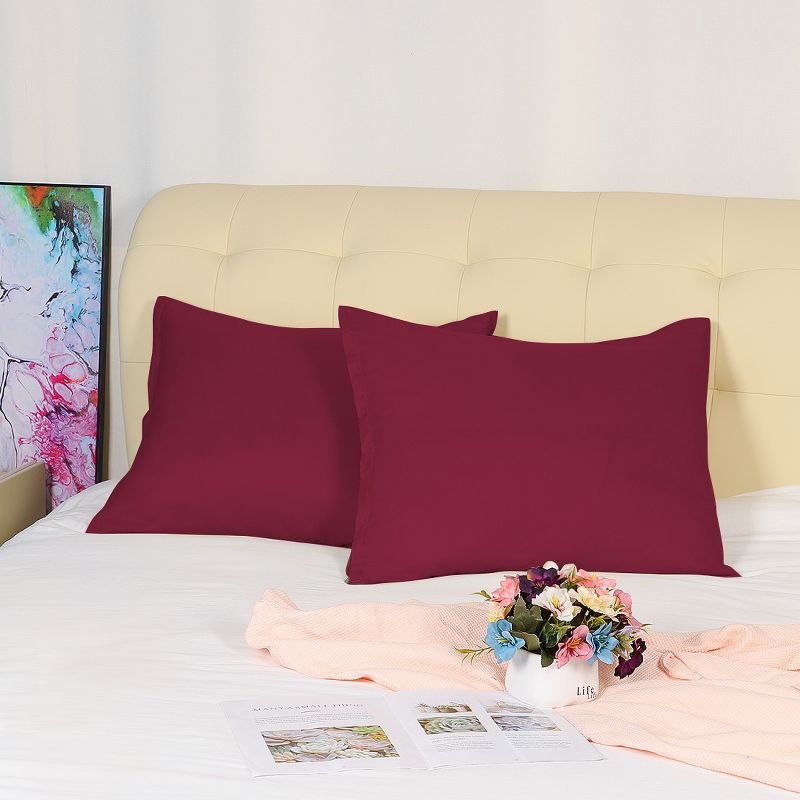 Product Name: 2 Pcs 601-800 Thread Count 1800 Series Soft Brushed Microfiber Pillow Case Wine - PiccoCasa
