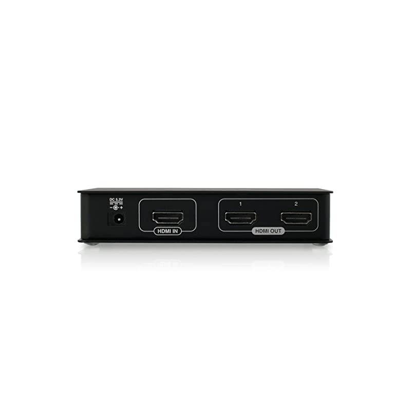 Style: 2-Port Splitter with 4K HDMISend Cinema 4K audio and video from a single HDMI source such as a set-top box, game console, Blu-ray player or media server or computer to two 4K displays or Projectors. Deliver exceptional Cinema 4K resolutions (4096 x 2160 at 60Hz) with crisp, 3D, and Deep color images up to 4K 12- bit ( 4: 2: 0), or 68 million colors, for a remarkable visual experience. The splitter extends the distance between your HDMI video sources and your HDMI displays up to 49 feet with its built-in amplifier with data rates up to 10.2 Gbps, providing greater flexibility in system design. The splitter is perfect for Multi-Display applications in the home, office, and classroom, and in digital signage, houses of worship, sports bars or other business settings. Send audio & video from 1 HDMI source to 2 HDMI displays Cinema 4K resolutions up to 4096 x 2160 at 60Hz, (