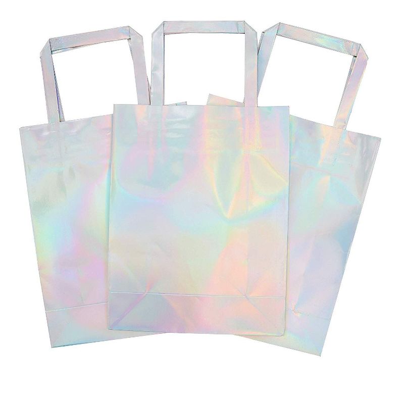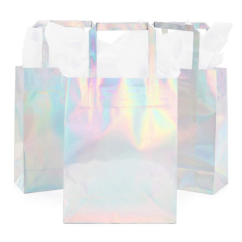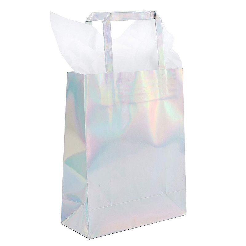 20x Holographic Foil Paper Gift Bags with Handles Tissue Papers 7 x 9 x 3 in