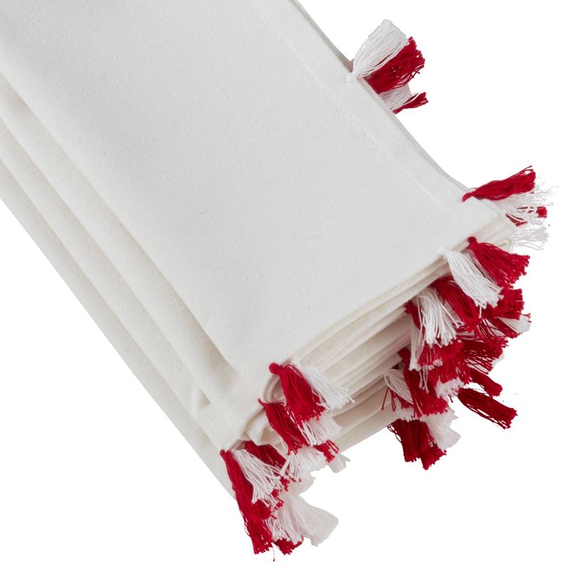 When you think of a dinner napkin, you think of sophistication and class, but with these fabric napkins, you not only get that, but you bring fun and cheerfulness to an already joyous occasion. Made from 100% cotton, these square-shaped cloth napkins feature festive tassels that put you in the Christmas spirit, and turn those melancholy frowns into jolly smiles.