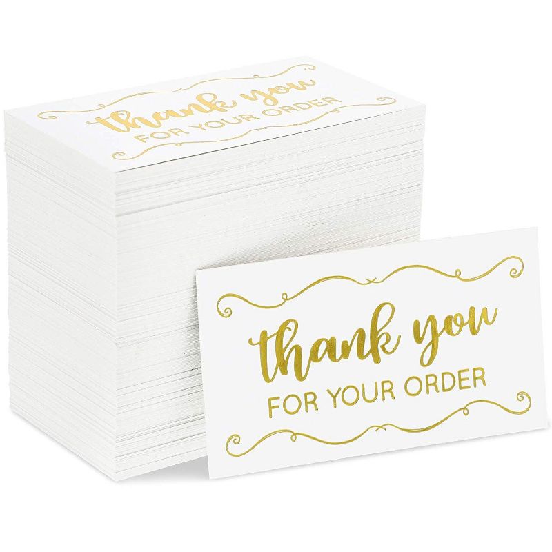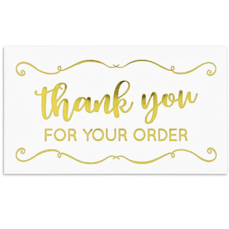 200x Thank You for Your Order Purchase Cards Notes Notecards Gold Foil 3.5 x 2" x 1