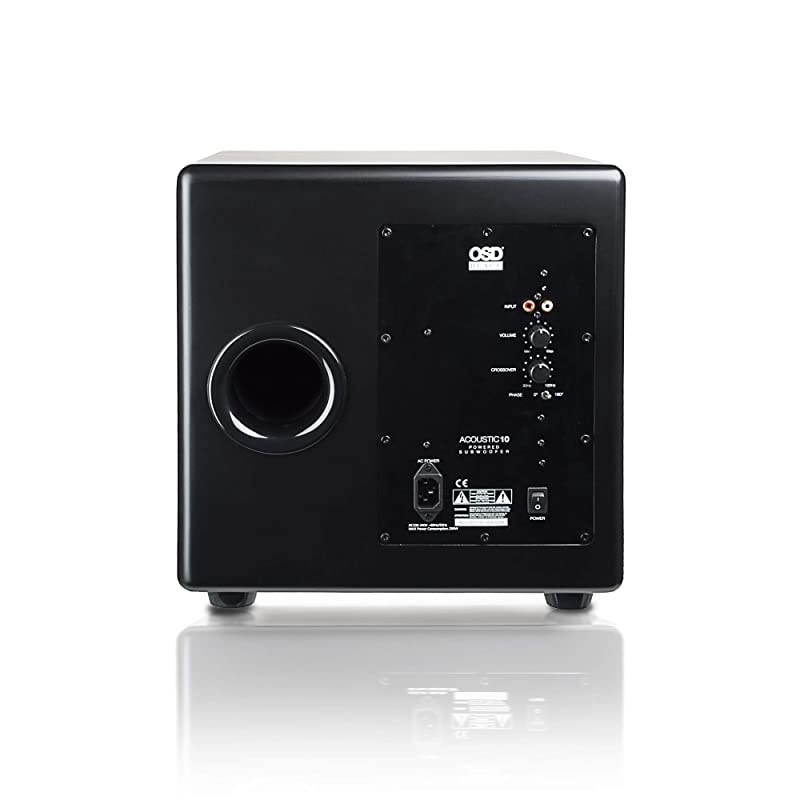 Size: 10-InchThe PS10 subwoofer is a front-firing, free-standing and fully powered 10-inch subwoofer. This is an ideal subwoofer for a home theater or a small to medium size room where you wish to have full, powerful sound. If you're looking to replace your home theatre subwoofer (not working? ), the PS10 is one you should seriously consider as a replacement. The PS10 high performance home theater subwoofer has speaker level inputs and delivers 125 watts of power. What Are the Benefits of A Front-Firing Subwoofer? As the smaller sibling of the PS12, the PS10 is a front-firing subwoofer. Both models complement OSD's down firing subwoofers. Front-firing subwoofers provide a lower frequency range of 25 Hz to 180 Hz, whereas down-firing subwoofers have a low frequency range of 50 Hz to 250 Hz. This requires more output power while using upgraded components that include a longer throw woofer for farther sound projection. The custom cabinet for the PS10 is designed to have both a front-firing woofer and dual front firing ports. Because of this design, you can place it close to a wall or tucked into a corner.