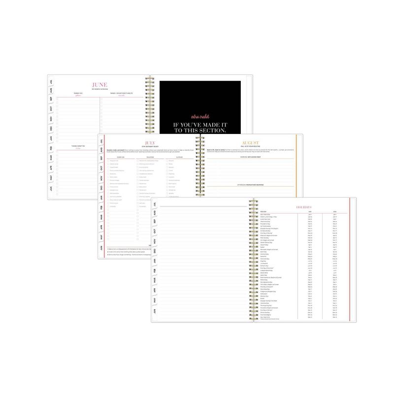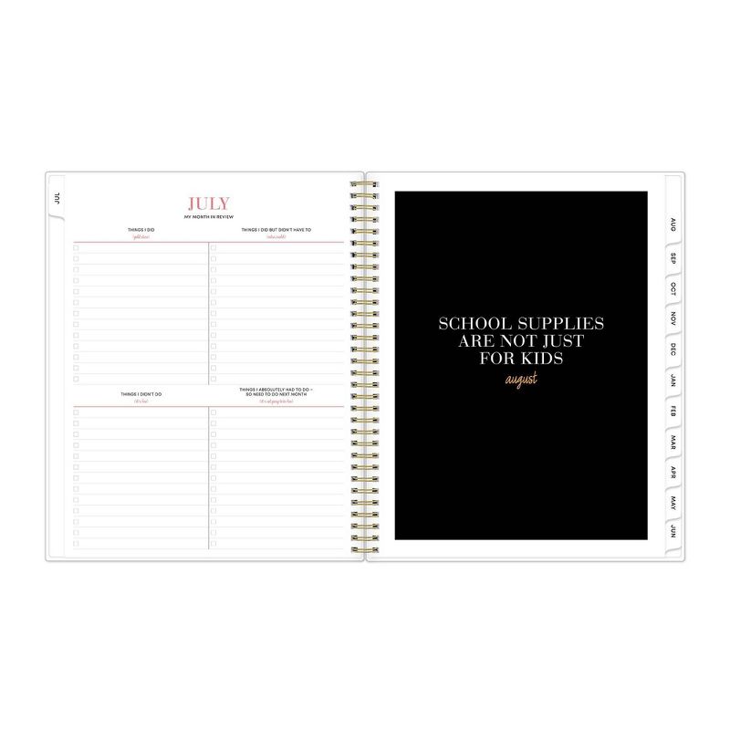 Set goals and plan your life with this weekly monthly planner in the large 8.5" x 11" page size. Perfect for home or office, this flexible wirebound planner includes lined weekly calendars, tabbed monthly views, and plenty of extra writing space. Extras include paper pocket, colorful stickers, and bookmark ruler!