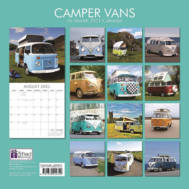 2021 Wall Calendar - Camper Vans Calendar, 12 x 12 Inch Monthly View, 16-Month, Automobile Theme, Includes 180 Reminder Stickers