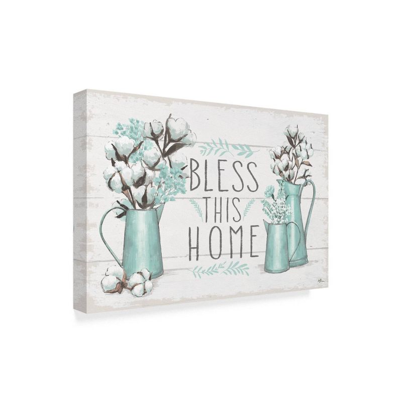 This ready to hang, gallery-wrapped art piece features blue watering cans on either side of a phrase. Giclee (jee-clay) is an advanced printmaking process for creating high quality fine art reproductions. The attainable excellence that Giclee printmaking affords makes the reproduction virtually indistinguishable from the original piece. The result is wide acceptance of Giclee by galleries, museums, and private collectors. Gallery wrap is a method of stretching an artist's canvas so that the canvas wraps around the sides and is secured a hidden, wooden frame. This method of stretching and preparing a canvas allows for a frameless presentation of the finished painting.