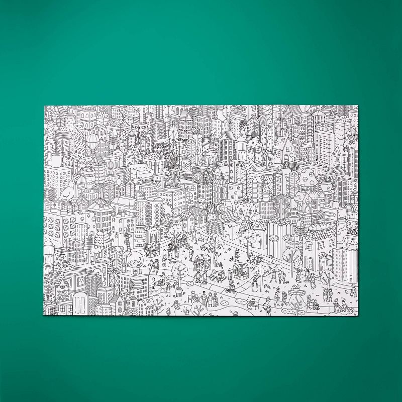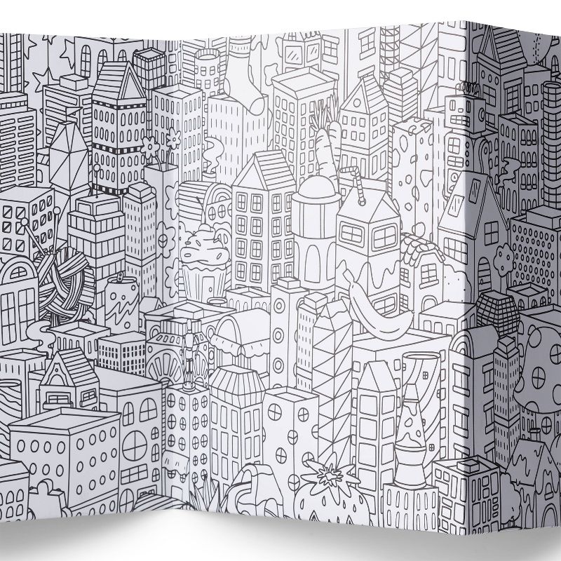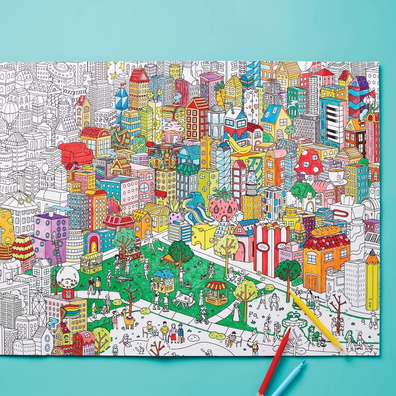 •Made of paper and featuring a cute city scene to color in