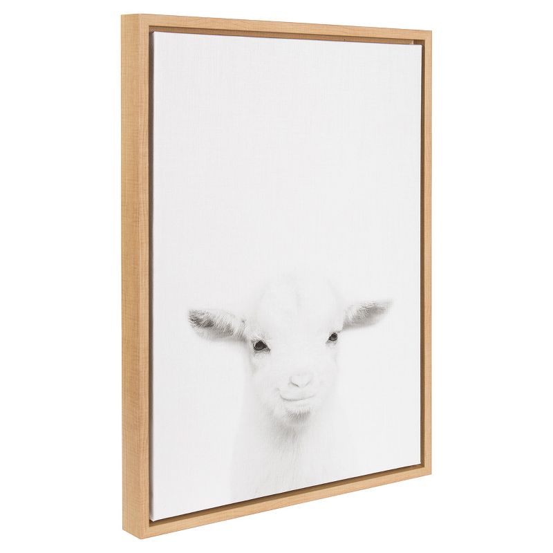 Display your love of animals in your home with this beautiful baby goat portrait by Simon Te. This framed floating canvas art will be the center of your home decor. Printed on gallery wrapped canvas and framed with a natural woodgrain or gray polystyrene frame and has two sawtooth hangers already attached to the black MDF inset back for easy wall display.