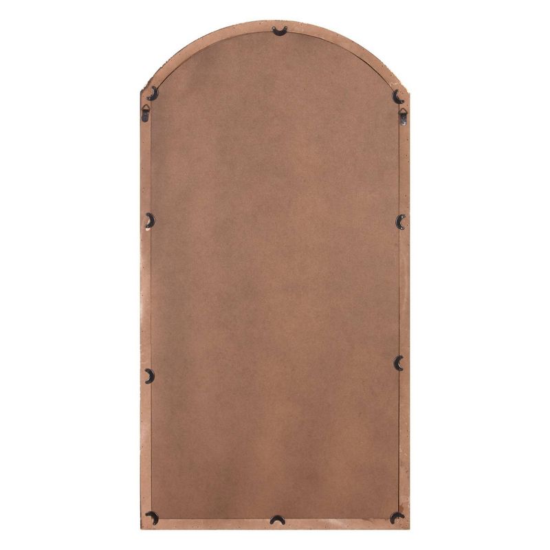This gorgeous wall mirror brings character and elegance into any decor. Hand crafted from solid wood, this oversized mirror makes for a classic statement piece. Hang it securely on a wall with two industrial strength hangers on the back or lean it up against a wall above a mantel. Mirror measures 44.5 inches high x 24 inches wide x 1 inch deep. Frame is finished in an elegantly distressed white finish for a vintage feel and measures 1.57 inches wide. It's cathedral inspired arched design will brighten any room and create the illusion of a larger space.