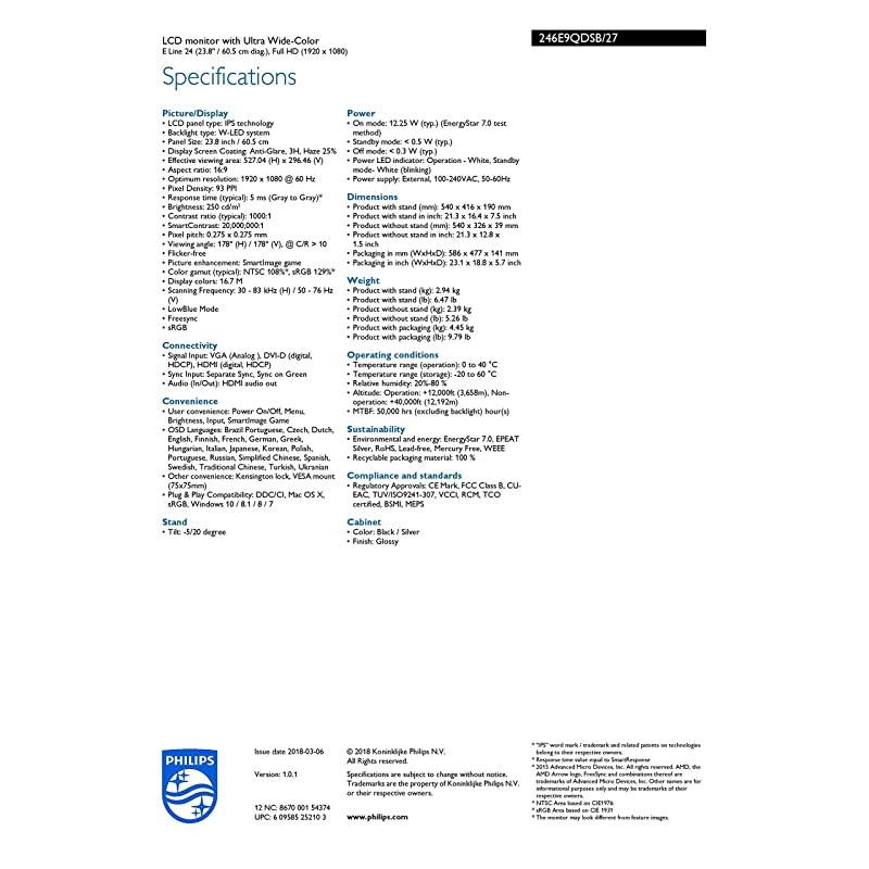 IPS Technology: The 246E9QDSB utilizes IPS display technology, which gives you extra wide viewing angles of 178/178 degree, making it possible to view the display from almost any angle. Unlike standard TN panels, IPS displays gives you remarkably sharp images with vivid colors, making it ideal for not only Photos, movies and web browsing, but also for professional applications, which demand color accuracy and consistent brightness at all times.