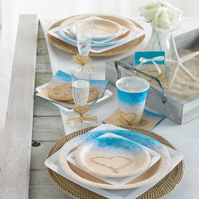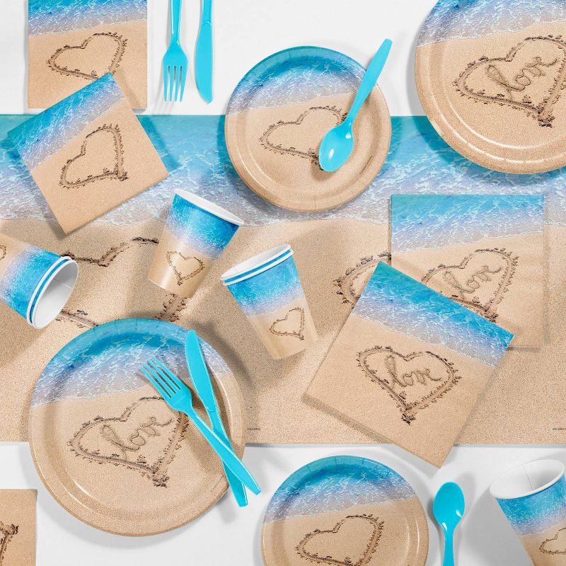 Serve up tasty appetizers and scrumptious desserts atop our beautiful Beach Love Dessert Plates. Constructed of heavyweight paperboard stock, the 7” plates are durable enough to handle your party needs and can simply be disposed of at the end of the event. Sold in quantities of 24 per package, the eye-catching plates can be combined with other vibrant tableware selections from the complete line of Beach Love party supplies.