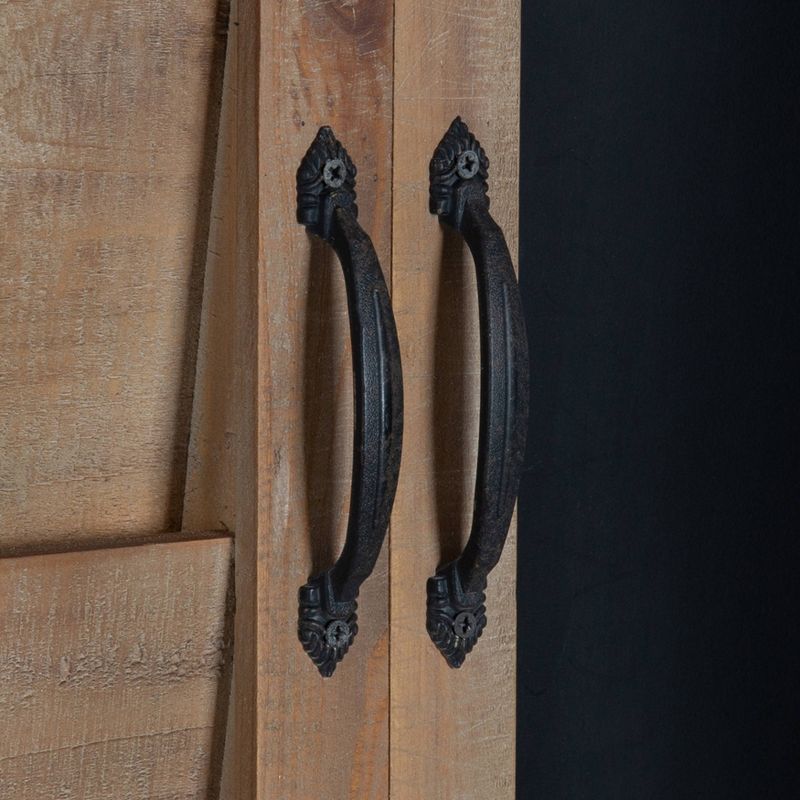 This organizational board combines farmhouse modern home décor with pure functionality. One side contains a chalkboard with a chalk holder to write your important reminders or positive notes to start off your day. The other side is designed to look like a handsome wooden shutter and is cleverly designed to hold 5 mail pockets to store your important incoming mail, bills, or outgoing mail and get that clutter off of the top of your counter. This functional board has sturdy wood construction with a rustic finish, two metal handles, and metal hardware to complete the look.