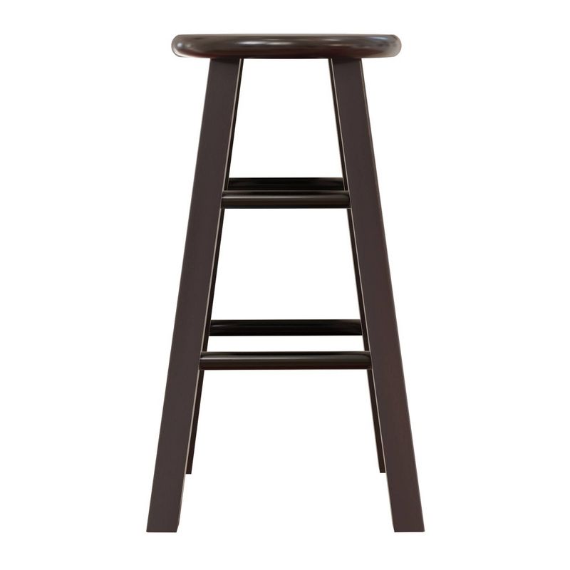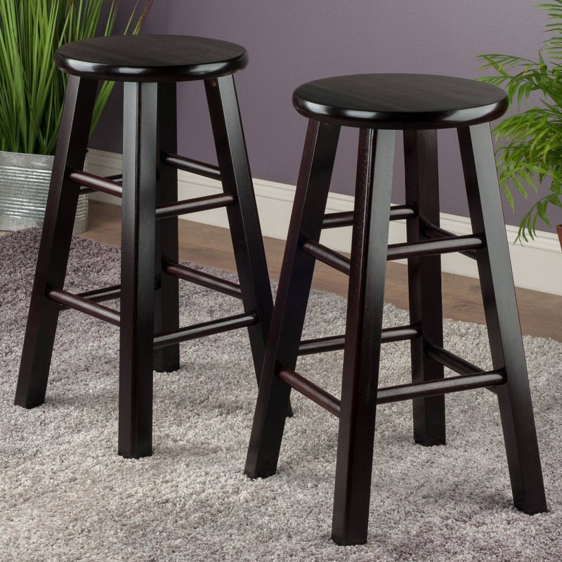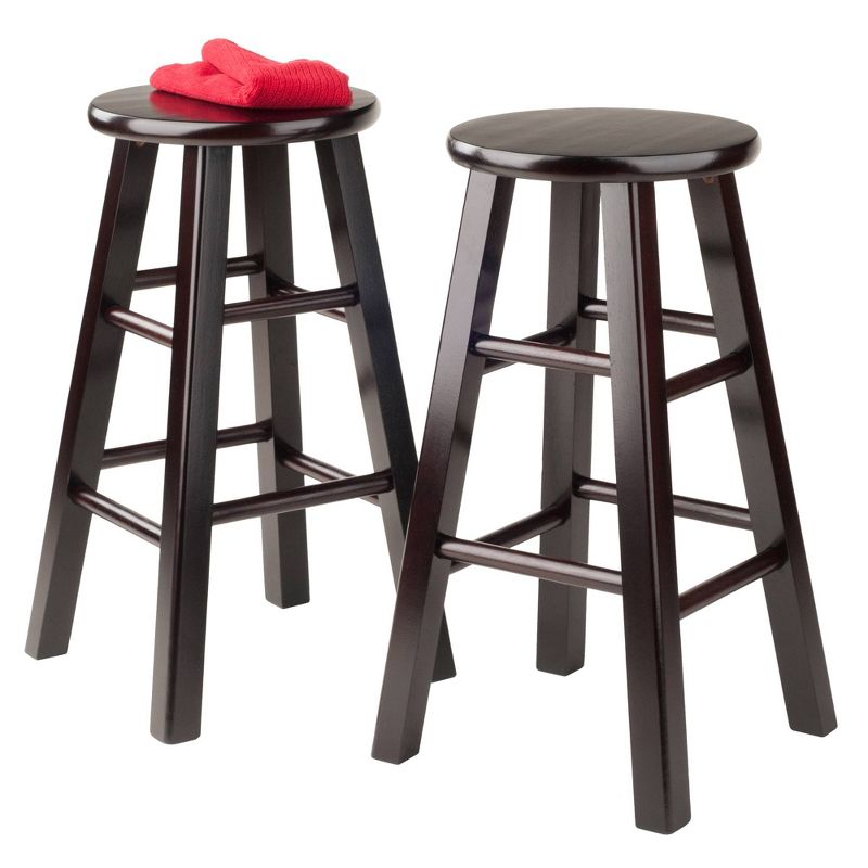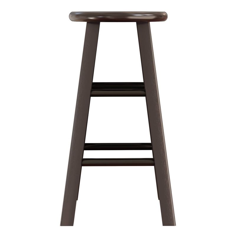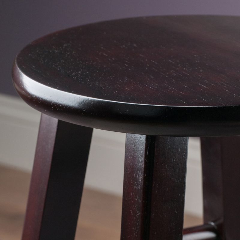 Pull your kitchen decor together with the Pacey 2pc Barstool Set from Winsome. These round barstools bring a simple yet timeless appeal to your space with a minimalistic design and wood construction. An espresso brown finish brings a touch of warmth to your counter or bar area, and family and friends alike will revel in the comfort of stretchers for their feet while they have a drink or munch on appetizers.