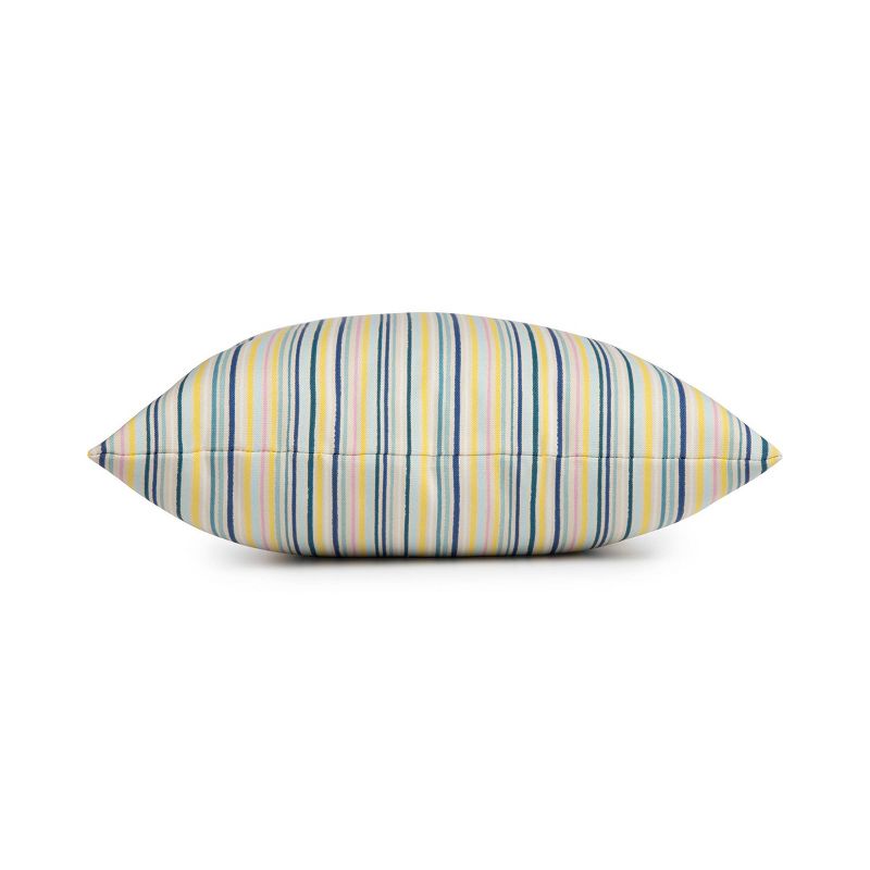 Liven up your patio seating with this Joyful Stripe 2-Piece Throw Pillow Set DuraSeason Fabric from Opalhouseâ„¢. This set of square throw pillows makes a welcoming addition to your outdoor chairs, lounges and more. It features repeated blue and yellow stripes for cheerful modern style. The fade- and water-resistant finish makes for durable outdoor use, while the soft fill offers sitting comfort and support while you relax. Plus, these accent pillows can be spot cleaned when required.