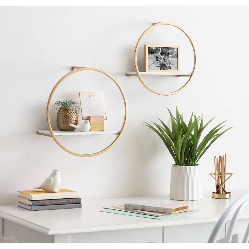 •The perfect 2-piece floating shelf set for organizing and displaying your favorite home accents. The larger shelf is 11.25-inches wide and 6-inches deep and the smaller shelf is 10.25-inches wide and 4-inches deep.