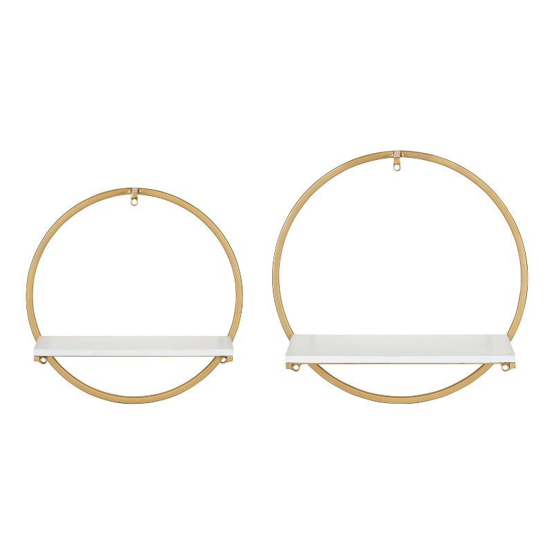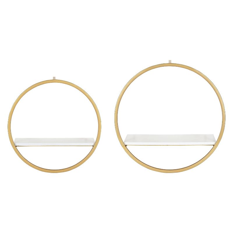 The modern design of the Wicks wall shelves will organize your home while adding a lovely upscale glam style to your interior. The solid wood shelf boards are deep enough to display your books, photo frames, or decorations in your living room or home office. The larger shelf is 11.25-inches wide and 6-inches deep and the smaller shelf is 10.25-inches wide and 4-inches deep. It's decorative shelving that's versatile, functional, and will be a beautiful accent in any room of your home.
