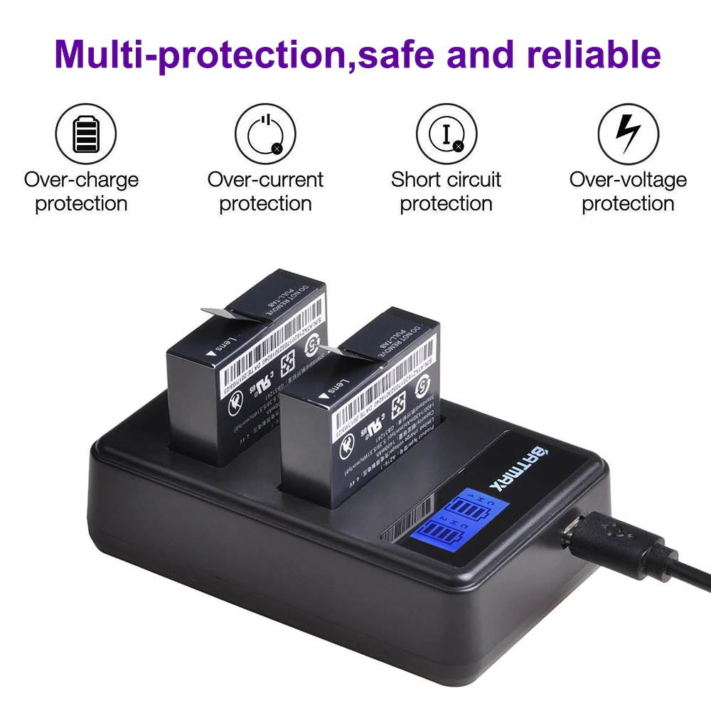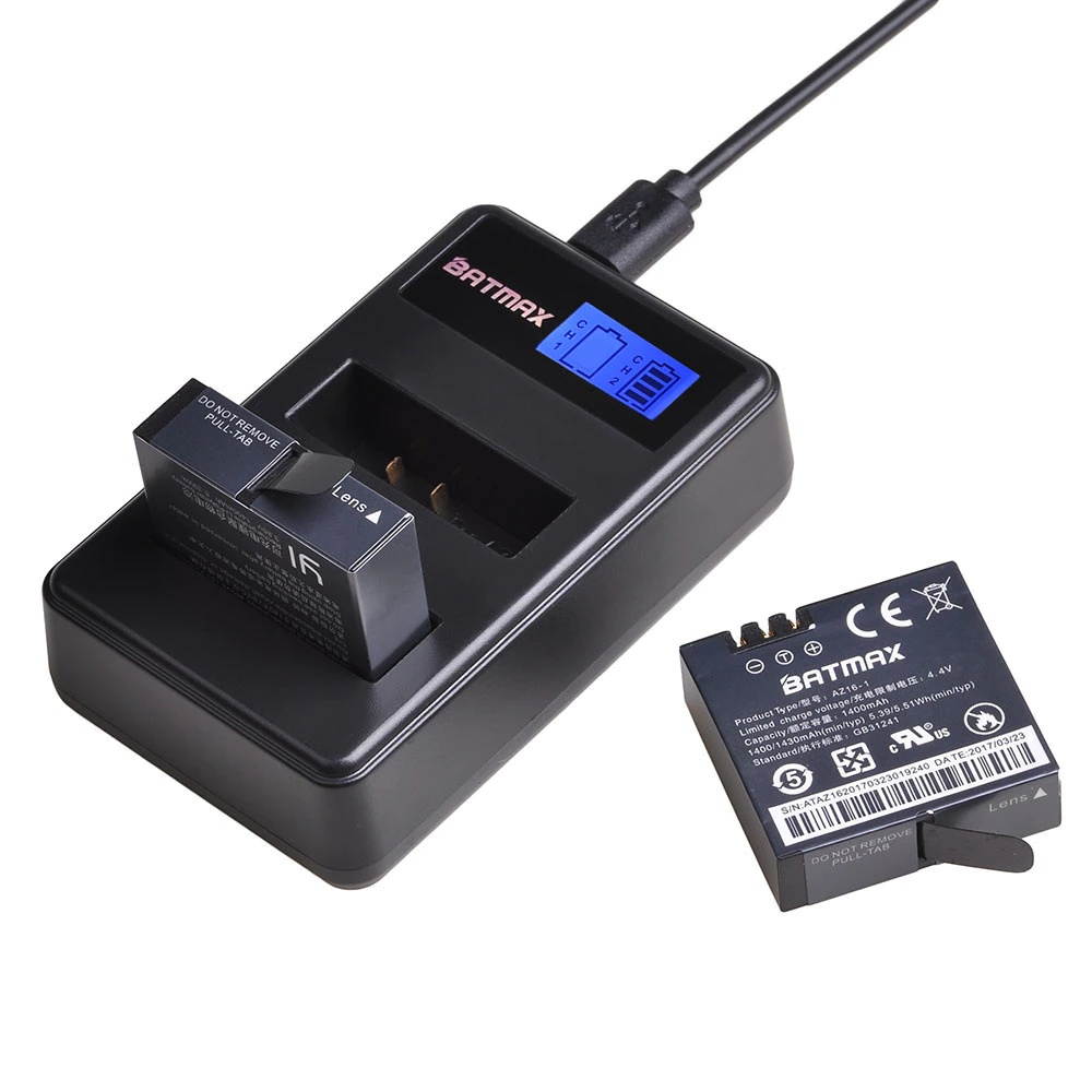 Buy 2Pcs 1400mAh AZ16-1 Batteries +LCD Dual USB Charger for Xiaomi Yi 4K Action Sports Camera II 2 Xiaomi Yi Accessories in United States - Cartnear.com