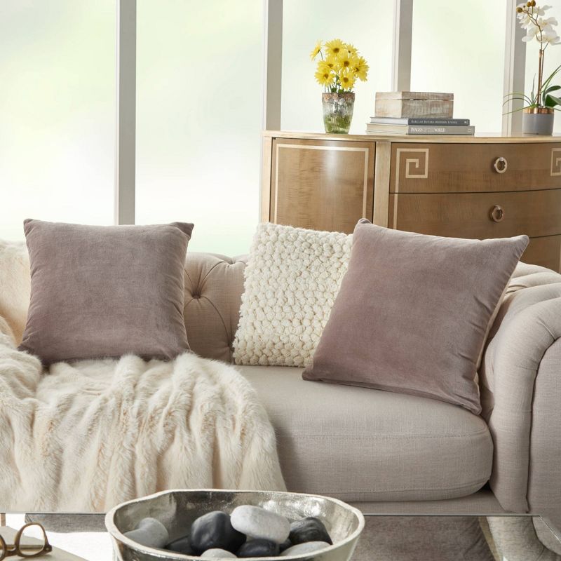 The perfect pair! This two-pack of velvet pillow covers is a great way to round out your décor. The front of these pillow covers is a solid color velvet texture and the back is solid white. Zipper closure to easily add your filling or insert and easily remove for cleaning. Recommend spot cleaning as needed usin a gentle cleanser.