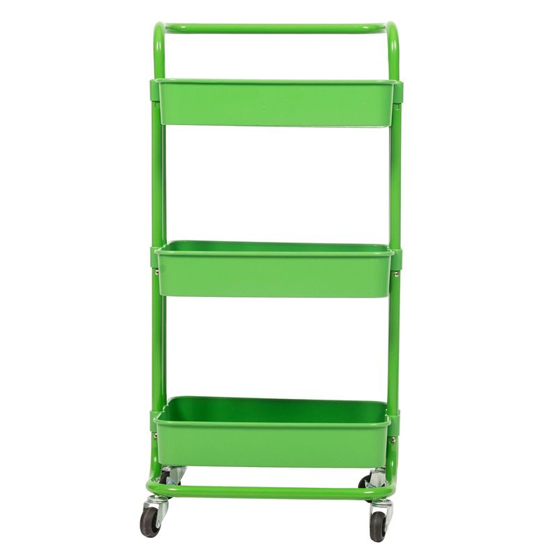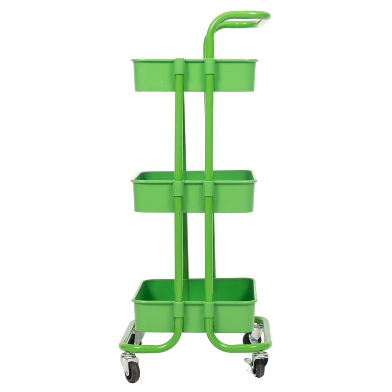 Keep supplies and daily necessities neatly stored and easily accessible with this handy mobile storage utility cart. With its sturdy steel construction and elegant, textured finish, this cart is a durable and stylish choice for your office or home. It features three deep, basket-style shelves to keep items securely contained. Each shelf has a generous 20-pound capacity. Four rolling casters let you easily transport the mobile cart around the room, and two lock to keep it securely in place. Designed for everyday convenience, this easy-to-assemble cart delivers functional storage space right where you need it.Features : Construction Material: Sturdy steel frame for lasting durability; Finish: Attractive green finish with textured bin bottoms; Three large, bin-style shelves keep contents securely contained; Four castors (2 locking) ensure smooth rolling and stability; Residential use only; 1 Year Limited Warranty. Specifications : Product Dimensions : 34.3"" H x 16.5"" W x 13.8"" D; Product Weight : 7.9lbs.